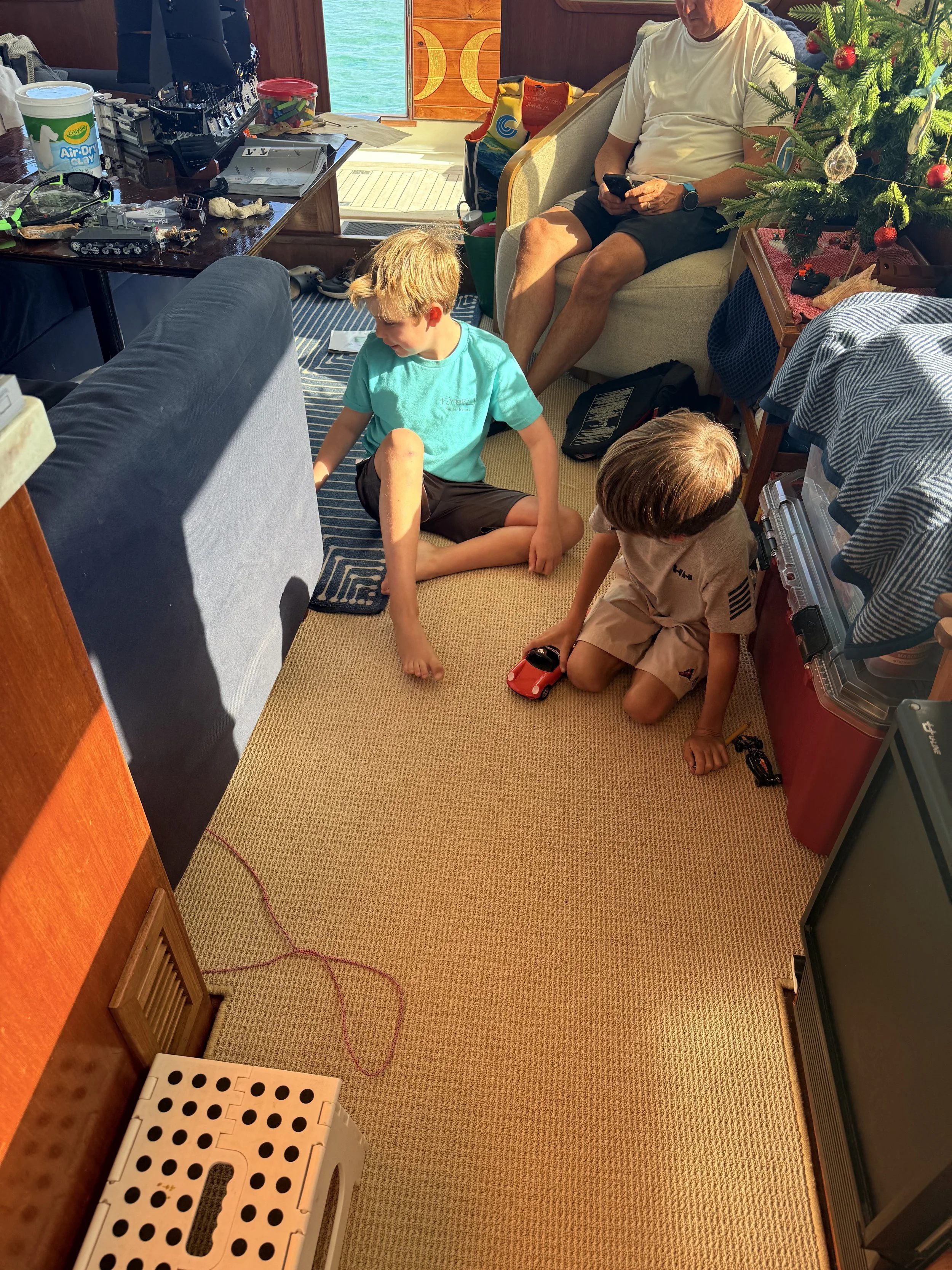 My biggest kid playing with the boys Christmas presents