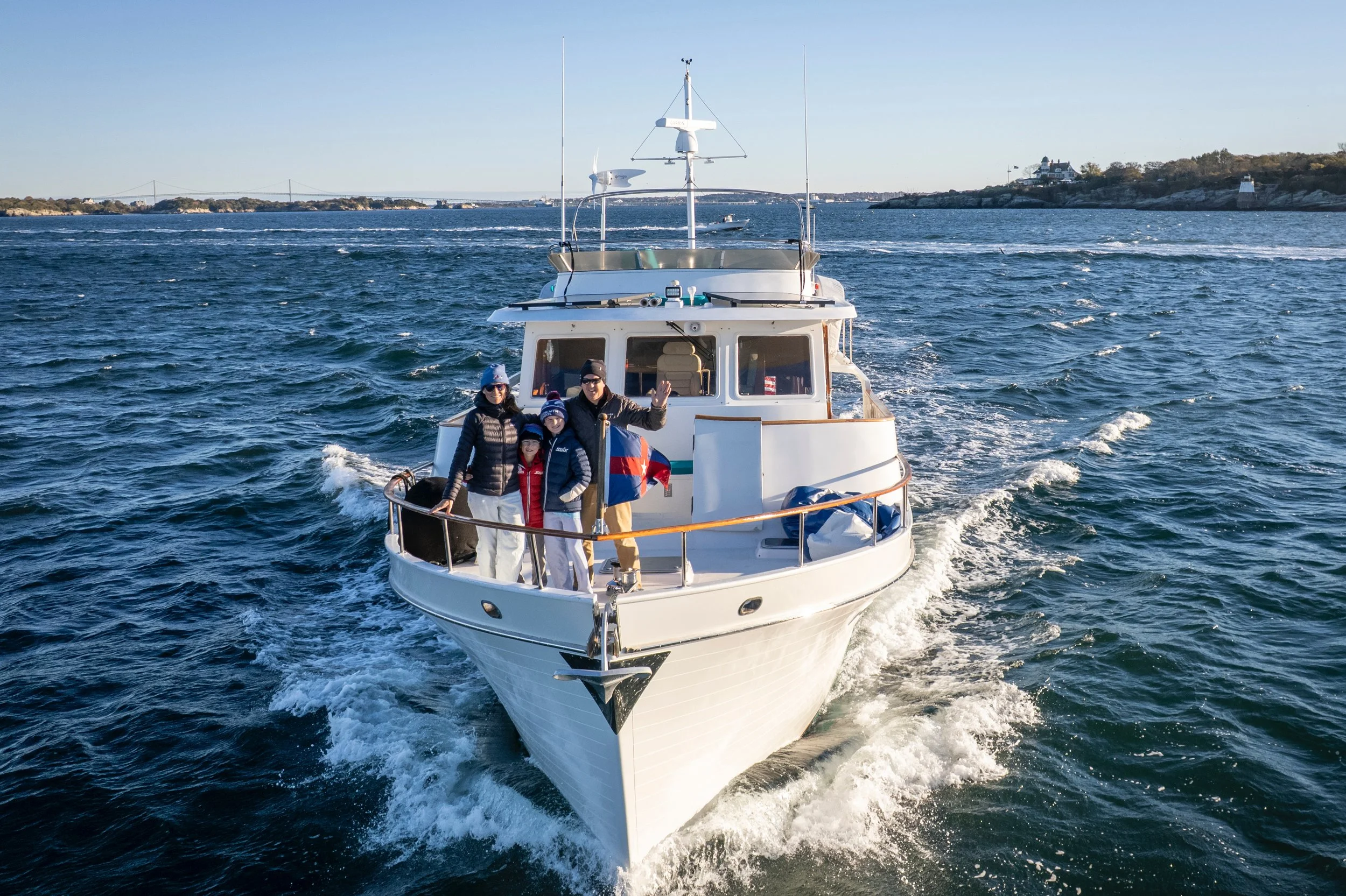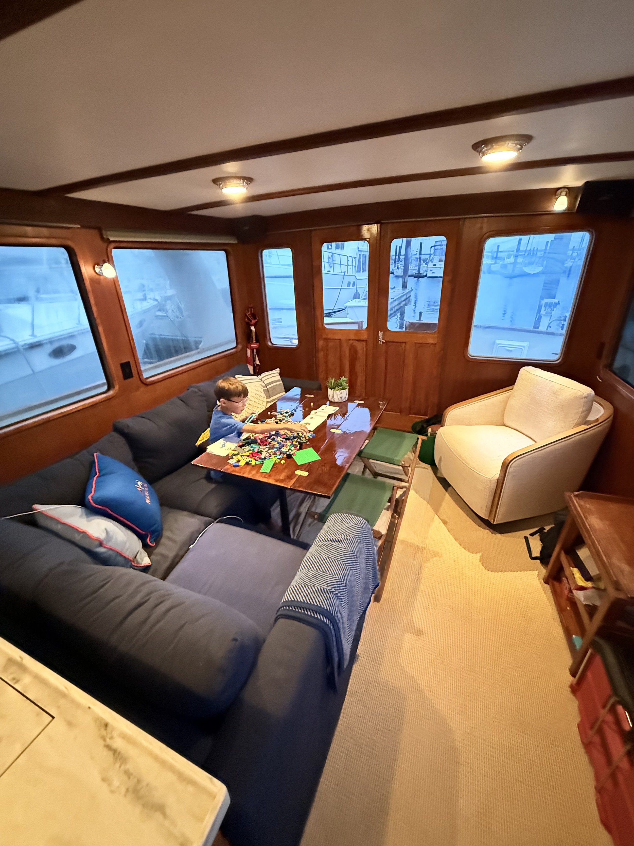 Comfort was the other big piece. We had just sold our house in Newport, and this boat was going to become our version of a summer home. We wanted something that felt open, livable, and spacious enough for our family. Not something we had to constantly adapt ourselves to.