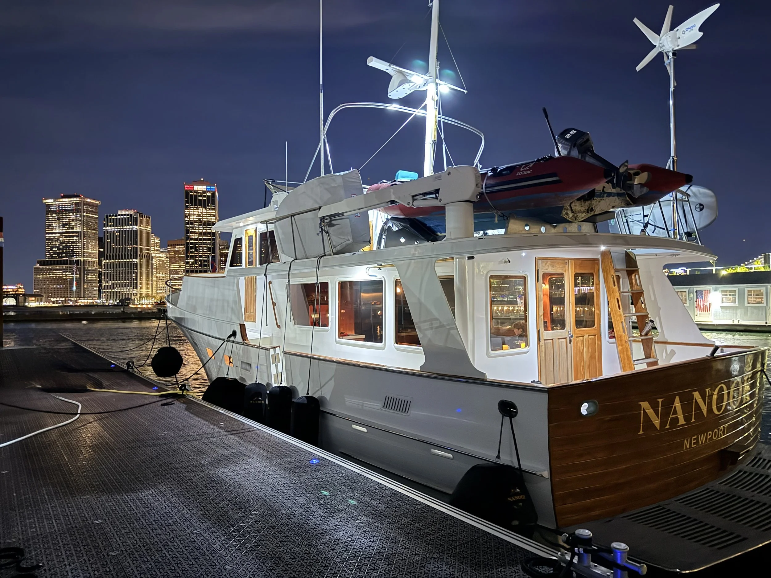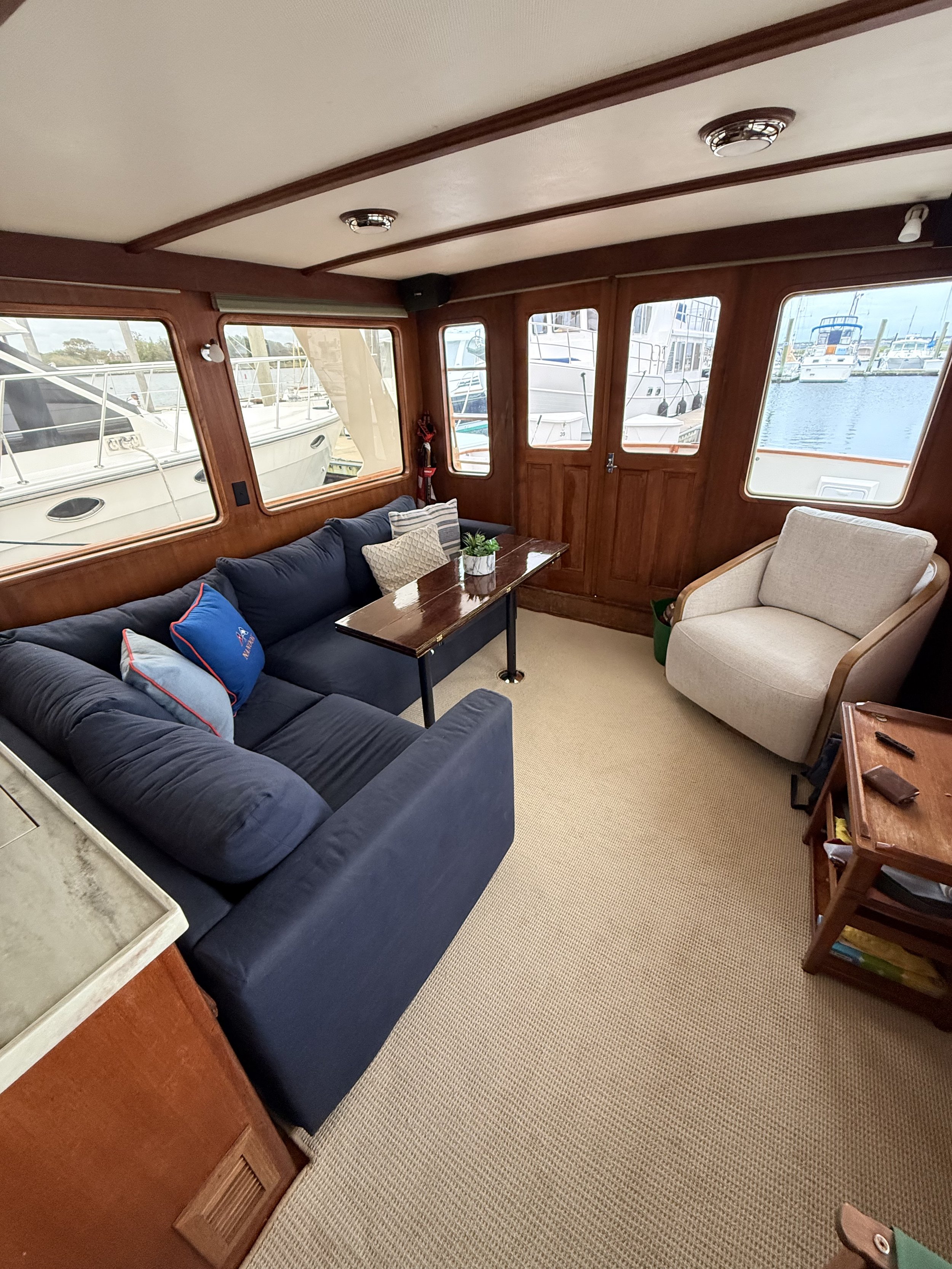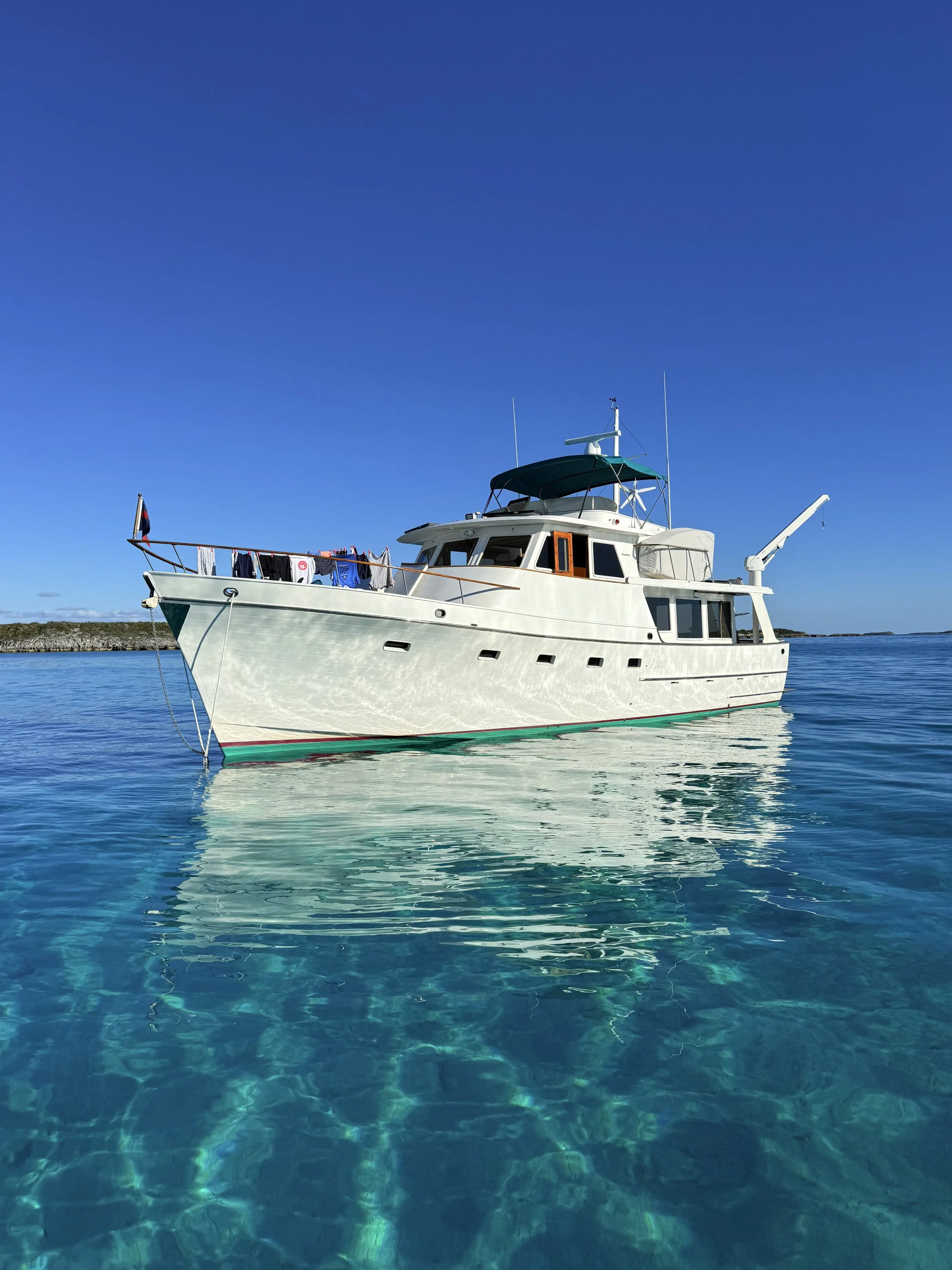People stop by constantly. Whether we’re at a dock or anchored out, people love to ask questions, look her over, or just say how beautiful she is. There’s something about the lines of these older Ocean Alexanders that stands out in a way newer boats often don’t.