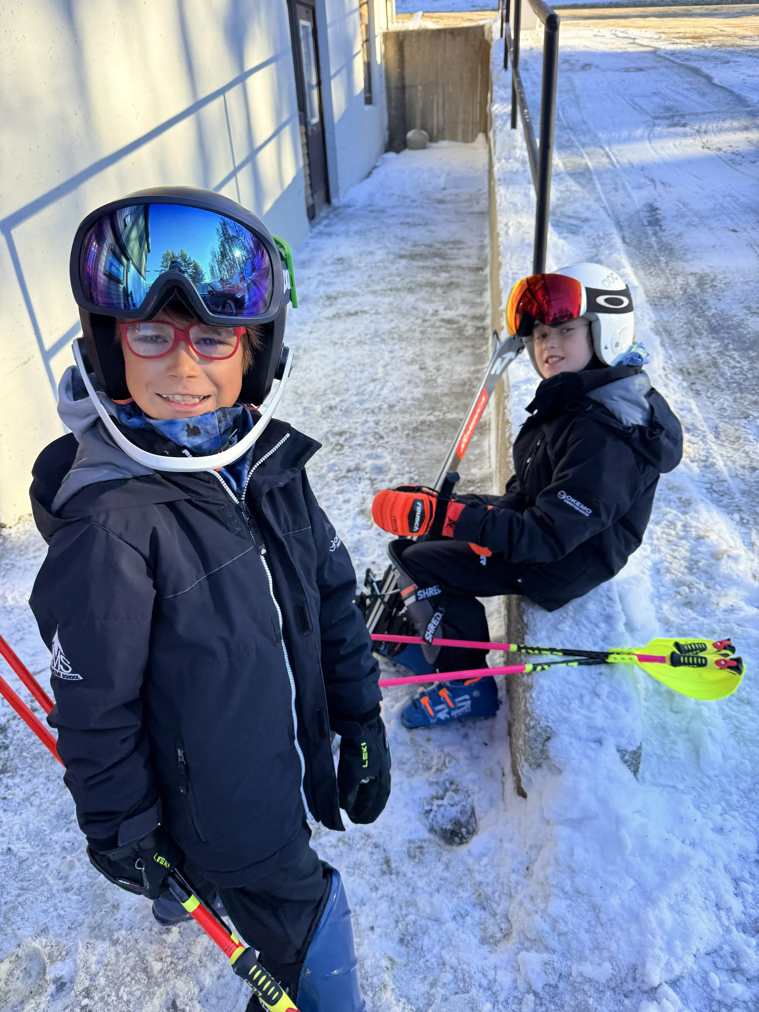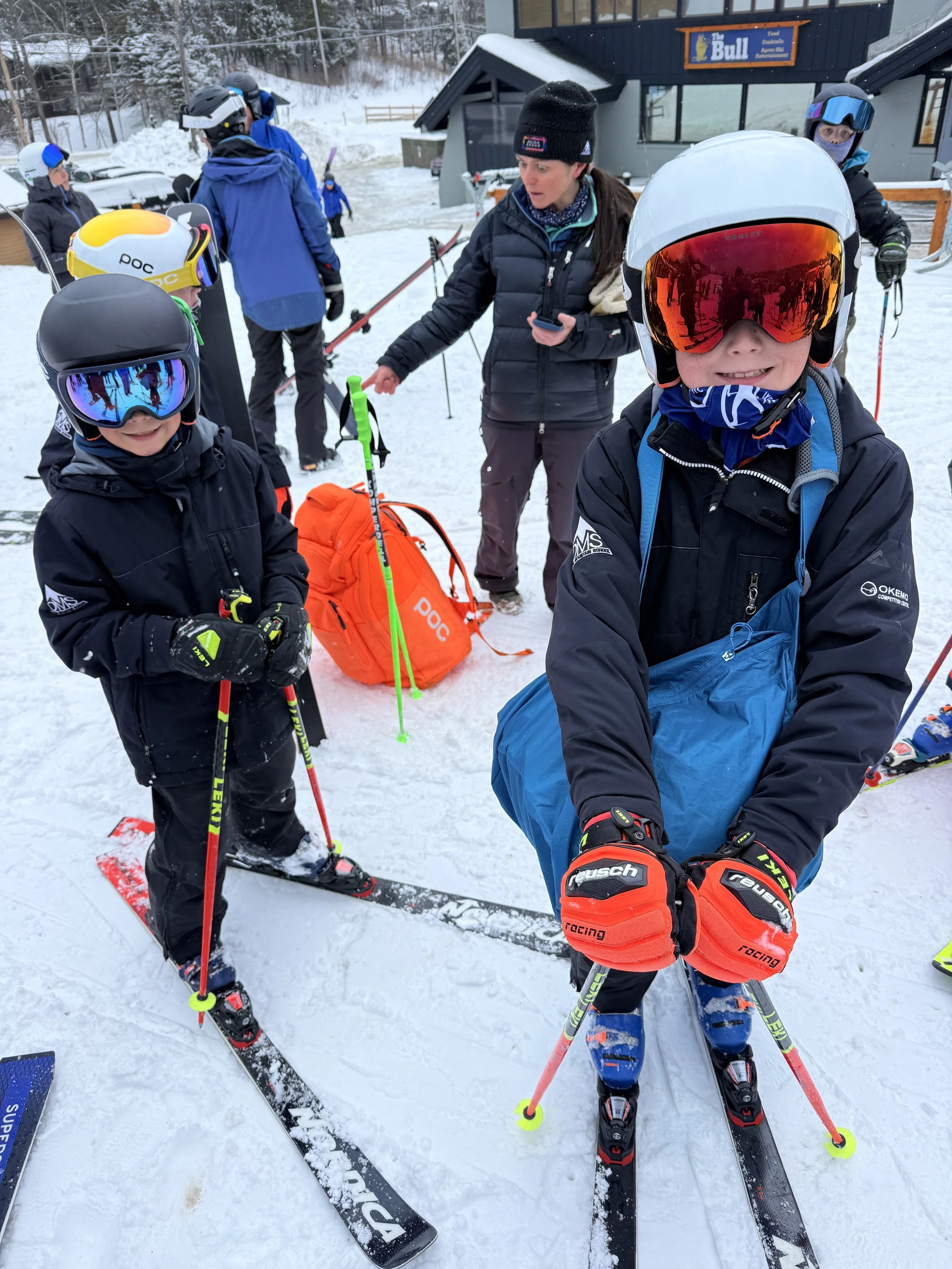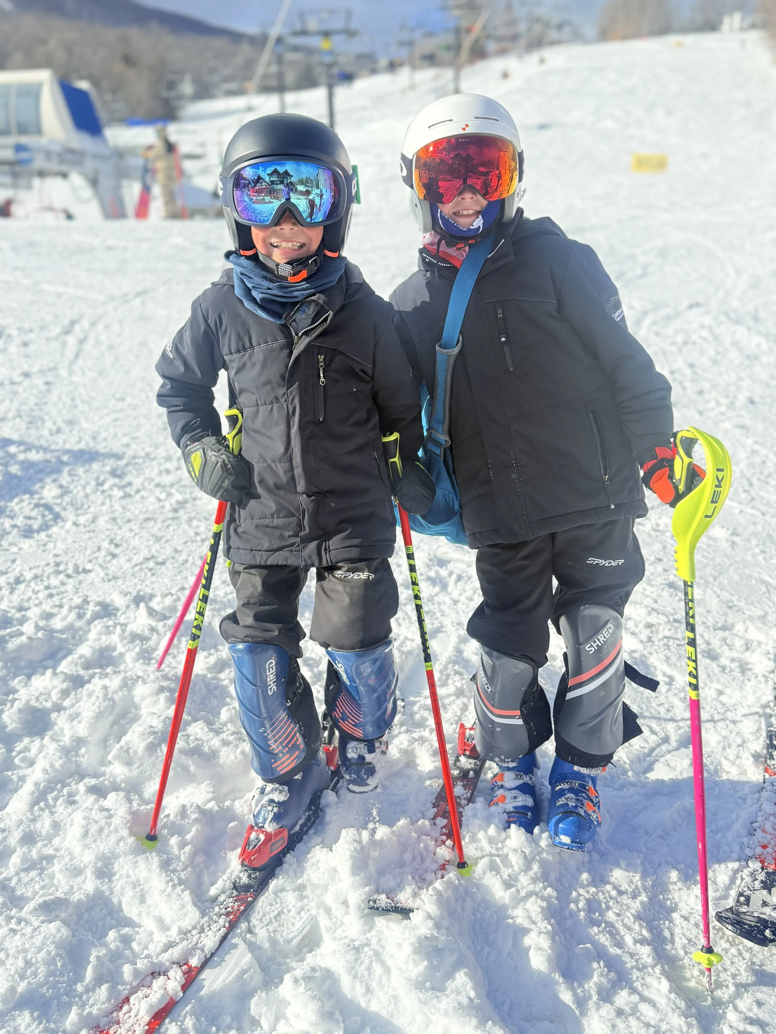 The next day we had ski race camp at Okemo. It was nice to be back on skis again and at the same time, pretty weird. It was fun to see all of our friends. Our coaches said that we did well.